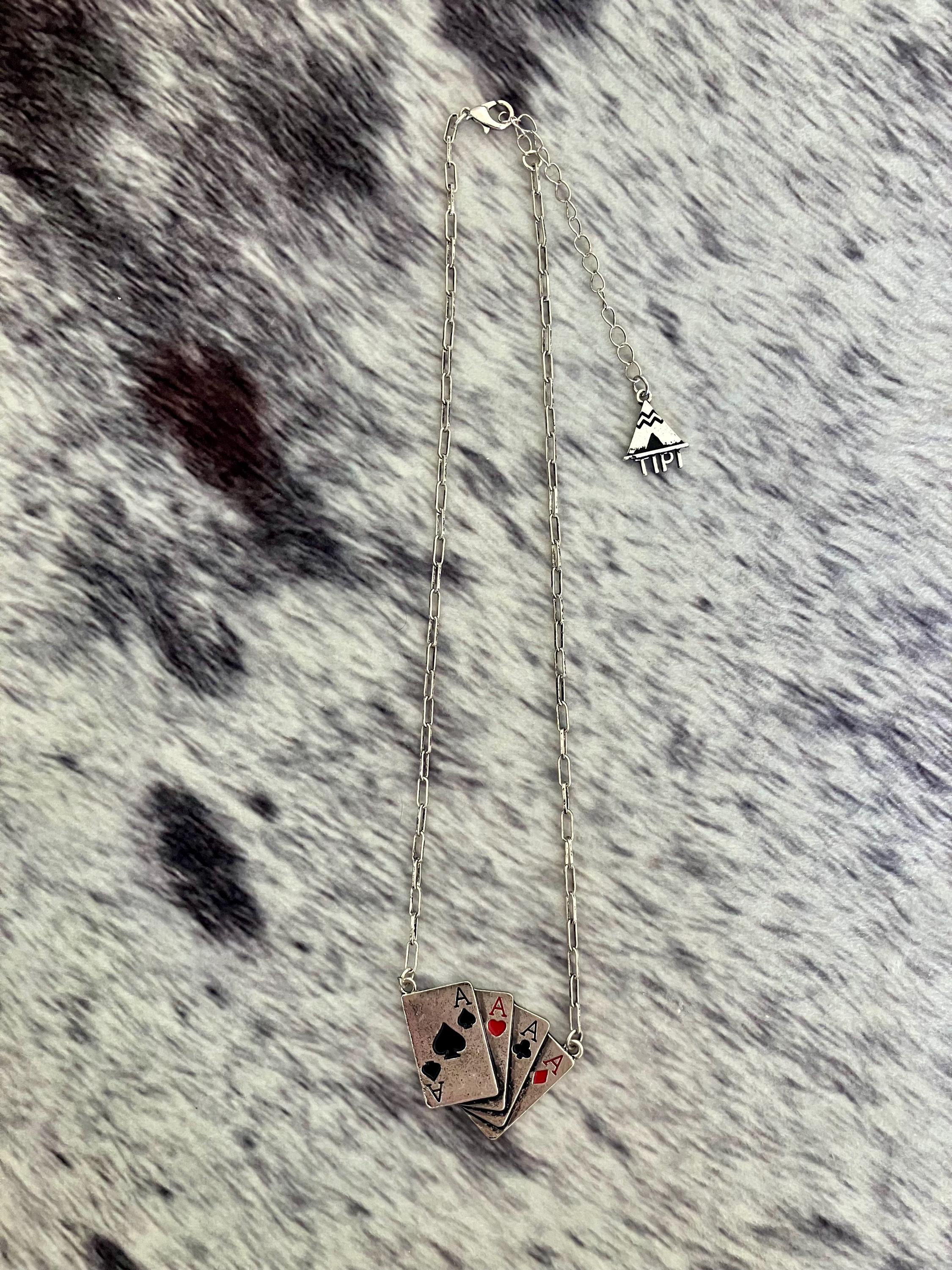 Stack the odds in your favor with this bold western playing card necklace ♠️❤️