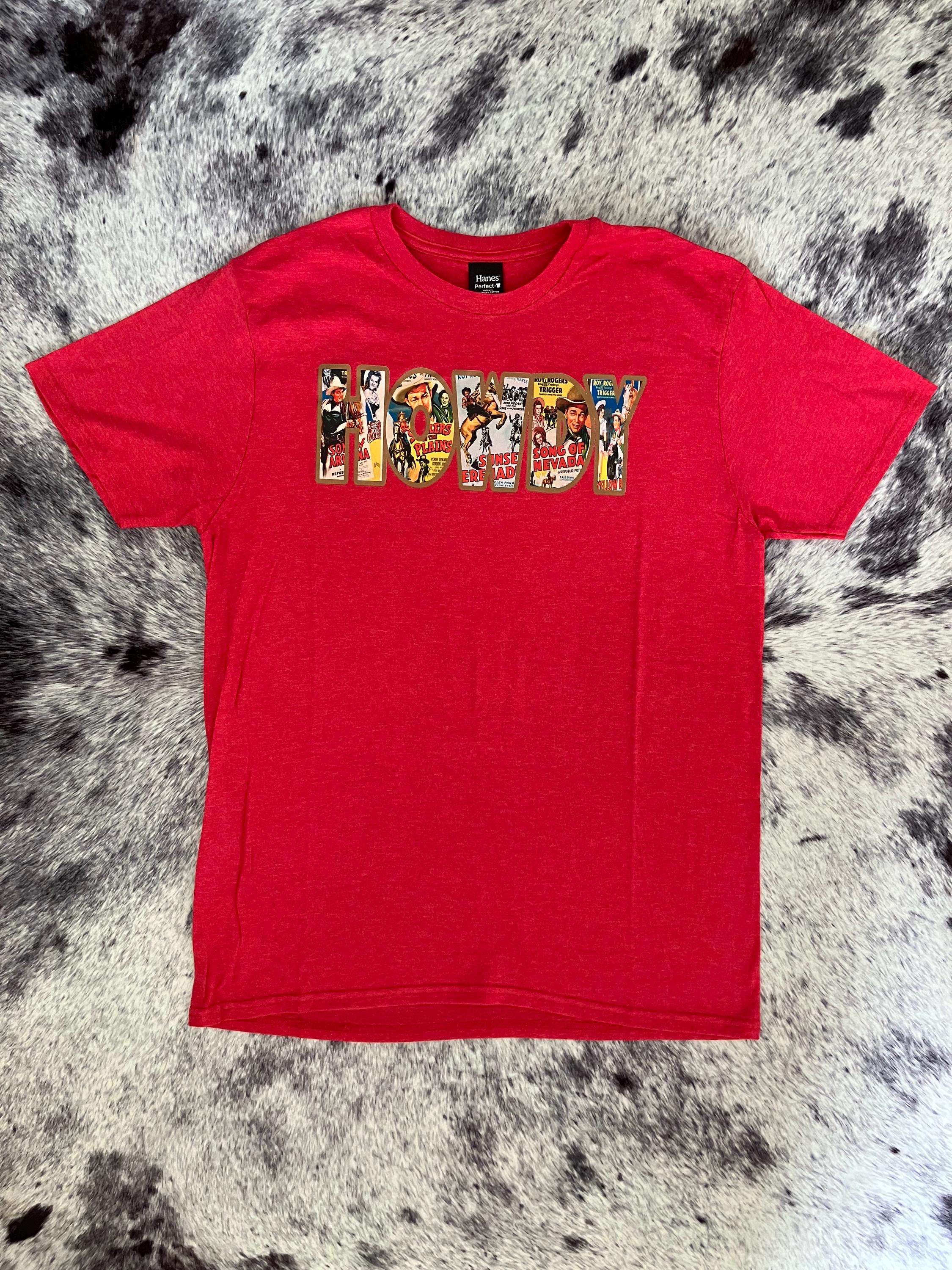 • Bold “Howdy” vintage western graphic