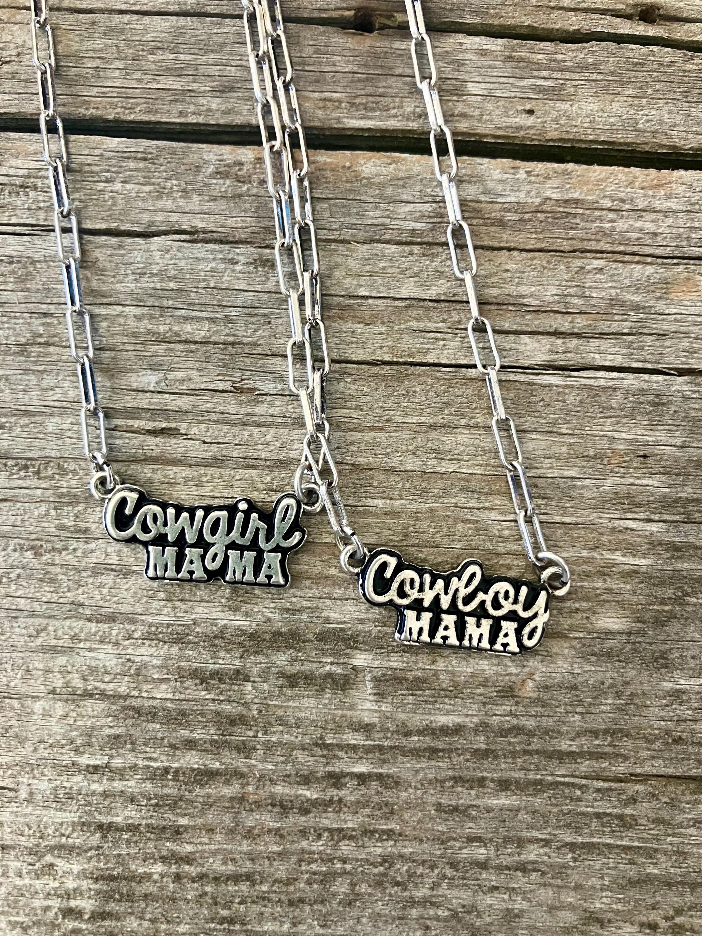 For the mamas raising cowboys and chasing dreams 🤎Details:“Cowboy Mama” statement pendantSilver-tone chainLightweight and comfortableEasy to layer or wear alone
