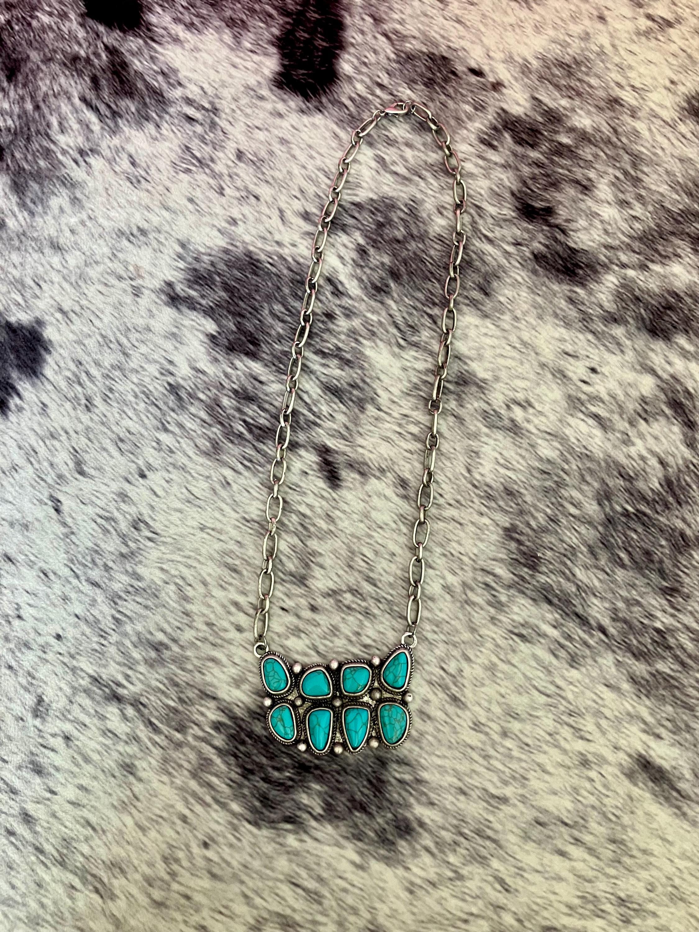 This turquoise statement necklace is the perfect finishing touch to any cowgirl outfit.